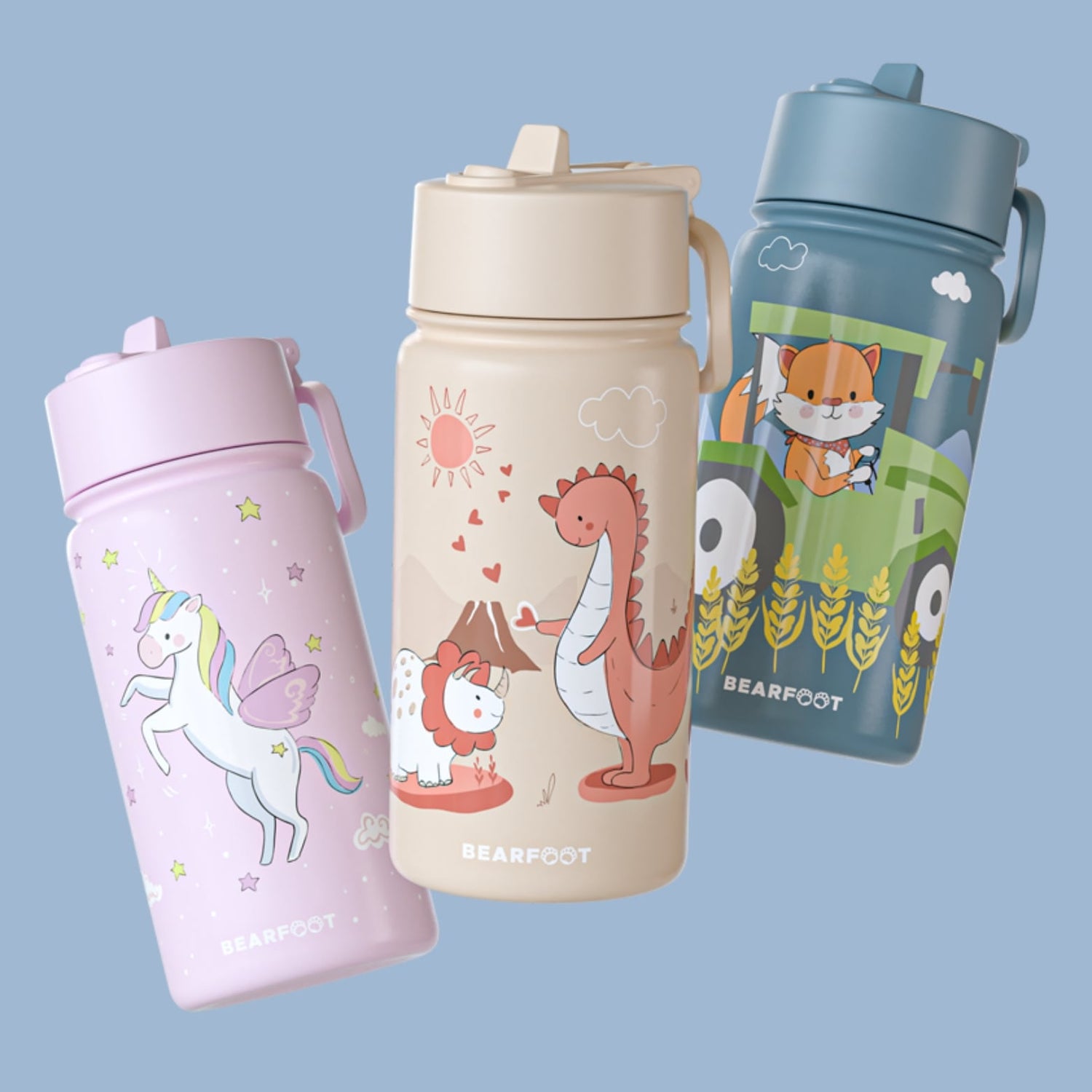 Entdecken Sie unsere Trinkflaschen für Kinder aus Edelstahl mit Strohhalm in der praktischen Thermosflaschenvariante mit 400 ml Fassungsvermögen. Diese BPA-freien und auslaufsicheren Wasserflaschen sind speziell für Kleinkinder konzipiert und eignen sich perfekt für Mädchen und Jungen in der Schule oder im Kindergarten.